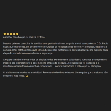 Um ecossistema de precisão que atua no mais alto padrão da medicina contemporânea, marcado por sofisticação técnica, visão estética apurada e reconhecimento internacional. Um ambiente destinado a quem não aceita o comum e escolhe estar onde os referenciais são definidos, não seguidos.